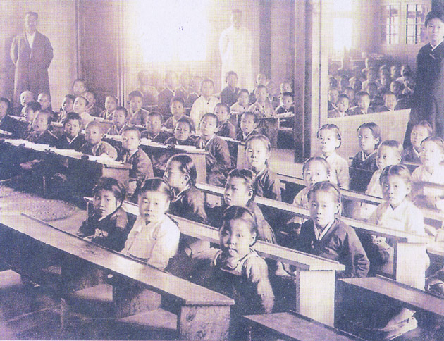 ¼¿ï ¿¬Áöµ¿ ¿¬µ¿±³È¸°¡ Áö³ 5¿ù 5ÀÏ ¾î¸°À̳¯À» ¸Â¾Æ ¡®¿¬µ¿ÁÖÀÏÇб³100³â»ç¡¯¿¡¼ óÀ½ °ø°³ÇÑ 1920³â´ë ÁÖÀÏÇб³ ¸ð½À. °ËÁ¤»ö ¿ÜÅõ¸¦ ÀÔÀº ¼±»ý(1¹Ý)°ú Èò µÎ·ç¸¶±â¸¦ °ÉÄ£ ¼±»ý(2¹Ý)ÀÇ ¸ð½ÀÀÌ ÀÌä·Ó´Ù. 1¹Ý ÇлýÀÌ ¼ÂÊÀ» ÇâÇØ ¾É¾Ò´Ù¸é 2¹Ý ÇлýµéÀº ³²ÂÊÀ» ÇâÇØ ¾É¾Æ ÀÖ´Ù. 1¡¤2¹Ý ³²ÇлýµéÀ» ´Ù°¡¾ÉÈ÷°í ºó ÀÚ¸®¿¡ ³²³àÄ¥¼¼ºÎµ¿¼®ÀÇ ¿øÄ¢¿¡ µû¶ó 3¹Ý ¿©ÇлýµéÀ» µ¥·Á¿Í ¾ÉÈù µí Ã¥»ó À§¿¡´Â Ã¥ÀÌ ¾ø´Ù. ¿¬µ¿±³È¸ Á¦°ø