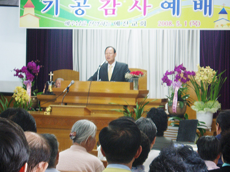 ¿¹Âù±³È¸´Â Áö³ 5¿ù 1ÀÏ º»´ç¿¡¼ ±â°ø°¨»ç¿¹¹è¸¦ µå·È´Ù. ¿¹¹è¿¡¼ °û»ïÂù ¸ñ»ç(¸¶»êµ¿±¤±³È¸ ¿ø·Î)°¡ ¡®±âÀû¡®À̶ó´Â Á¦¸ñÀ¸·Î ¸»¾¸À» ÀüÇß´Ù. À̳¯ ÇÔ¾È ´ë»ç¸é Áö¿ª ¼ºµµ ¹× ÃâÇâ ±³¿ì 80¿©¸íÀÌ Âü¼®Çß´Ù.