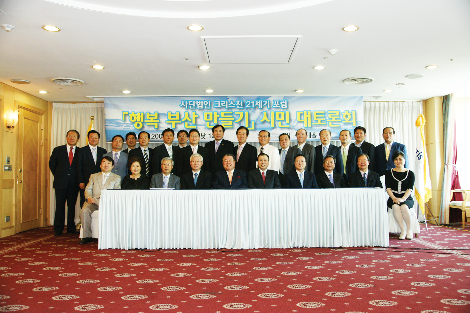 Å©¸®½ºÃµ 21¼¼±â Æ÷·³Àº Áö³ 5¿ù 31ÀÏ ³· 12½Ã¿¡ ·Ôµ¥È£ÅÚ 42Ãþ »þ·Ôµ¥È¦¿¡¼ ¡®ÇູºÎ»ê¸¸µé±â¡¯½Ã¹Î ´ëÅä·Ðȸ¸¦ °³ÃÖÇß´Ù. À̹ø ´ëÅä·Ðȸ´Â ¹°ÁúÁ¦ÀÏÁÖÀÇ, Çâ¶ôÁ¦ÀÏÁÖÀÇÀÇ ¹°°á ¼Ó¿¡¼ ÇÔ¸ôµÇ°í À§ÃàµÇ¾î°¡´Â Á¤½ÅÀû °¡Ä¡¸¦ ¼öÈ£Çϸé¼, ºÎ»êÀ» º¸´Ù ´õ ÇູÇÑ »çȸ·Î ¸¸µé¾î °¡±â À§ÇÏ¿© ±âµ¶±³ Á¤½ÅÀ» ¹ÙÅÁÀ¸·Î ½Ã¹Î»çȸ ¹× ºÎ»ê½Ã ´ç±¹ ±×¸®°í ¿©·¯ ½Ã¹Î´Üüµé°ú ÇÔ²² ÇູÀÌ·ÐÀÇ Á¤¸³ ¹× ÇູÇÑ »ýȰÀ» ÁöÇâÇÏ´Â ±¸Ã¼Àû ÇൿÀ» ½ÇÇàÇÏ¿© ¡®¿ôÀ½ÀÇ °øµ¿Ã¼¡¯¸¦ ÁöÇâÇÏ´Â ¡®ÇູºÎ»ê¸¸µé±â ¿îµ¿º»ºÎ¡®¸¦ ⸳ÇϰíÀÚ Çϱâ À§ÇÔÀ̾ú´Ù.