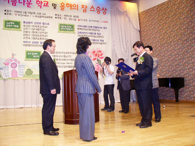 ºÎ»êYMCA(ÀÌ»çÀå ¿©Ã¢È£)¿Í ºÎ»ê±¤¿ª½Ã±³À°Ã»(±³À°°¨ ¼³µ¿±Ù)Àº Áö³ 5¿ù 15ÀÏ ±¹Á¦½Å¹® ´ë°´ç¿¡¼ Á¦8ȸ ¾Æ¸§´Ù¿î Çб³ ¹× ¿ÃÇØÀÇ Âü ½º½Â»ó ½Ã»ó½ÄÀ» °®°í ºÎ»ê ±³À° ¹ßÀüÀ» À§ÇØ Çå½ÅÇØ ¿Â Çб³¿Í ±³»çÀÇ ±³À°¾Ö¸¦ °Ý·ÁÇß´Ù. 400¿© ¸íÀÇ ±³»ç¿Í ÇлýµéÀÌ Âü¼®ÇÑ °¡¿îµ¥ KNN Á¤¼ö¿µ ¾Æ³ª¿î¼ÀÇ »çȸ·Î ¿¸° ½Ã»ó½Ä¿¡¼ ¡ã½Å³²ÃÊ, ºÎ»ê³²°í°¡ ±³À°ÀÚÄ¡°¡ ¾Æ¸§´Ù¿î Çб³»ó(ºÎ»êYMCA ÀÌ»çÀå»ó) ¡ãµ¿¹éÁß, ¿¬¹ÌÃʰ¡ Áö¿ª»çȸ°¡ ¾Æ¸§´Ù¿î Çб³»ó(Ƚ±׷ì ȸÀå»ó) ¡ã³«µ¿Áß, ºÎ»êÁß¾Ó¿©ÀÚÁßÀÌ µ¿¾Æ¸®È°µ¿ÀÌ ¾Æ¸§´Ù¿î Çб³»ó(±¹Á¦½Å¹® »çÀå»ó, KNN »çÀå»ó) ¡ãÀ¯¼º±Ù(ûÇÐÃÊ), ±èºÎ±â(±Ý»çÁß), ÃÖºÀ±æ(µ¿·¡°í), °ÇѱÙ(¾ç´öÃÊ), Á¶Çö¼÷(´ë¿¬ÃÊ) ±³»ç°¡ µ¿·á°¡ ÃßõÇÑ ½º½Â»ó(ºÎ»ê½Ã±³À°°¨»ó) ¡ãÀ̱¤¿ø(´ë¾çÀüÀÚÁ¤º¸°í) ±³»ç°¡ Á¦ÀÚ°¡ ÃßõÇÑ ½º½Â»ó(ºÎ»ê½Ã±³À°°¨»ó) µîÀ» ¼ö»óÇß´Ù. ¾Æ¸§´Ù¿î Çб³ ¹× ¿ÃÇØÀÇ Âü ½º½Â»óÀº 2000³â 5¿ù ¡®½º½Â¿¡°Ô Á¸°æ°ú »ç¶ûÀ»¡¯ ÁÖÁ¦ ¾Æ·¡ Á¦Á¤, °ø±³À°¿¡ ´ëÇÑ ½Å·Ú ȸº¹ ¹× Âü ½º½Â»óÀÇ ±¸ÇöÀ» µµ¸ðÇØ¿Ô´Ù. ¿©Ã¢È£ ÀÌ»çÀåÀº ¡°Âü±³À°À» À§ÇØ ¼ö°íÇÏ´Â Çб³¿Í ±³»çµé¿¡°Ô Á¶±ÝÀ̳ª¸¶ À§·Î¸¦ ¼±»çÇϱâ À§ÇØ ¸¶·ÃÇß´Ù. ¾ÕÀ¸·Î ºÎ»êYMCA°¡ Àü°³ÇÏ´Â ¾Æ¸§´Ù¿î Çб³ °øµ¿Ã¼ ¿îµ¿ÀÌ ´õ¿í Ȱ¼ºÈµÇ¾î ¾Æ¸§´Ù¿î Çб³, Âü½º½ÂÀÌ °÷°÷¿¡¼ ÀϾ±æ ¼Ò¸ÁÇÑ´Ù¡±¸ç Àλ縻À» ÀüÇß´Ù.