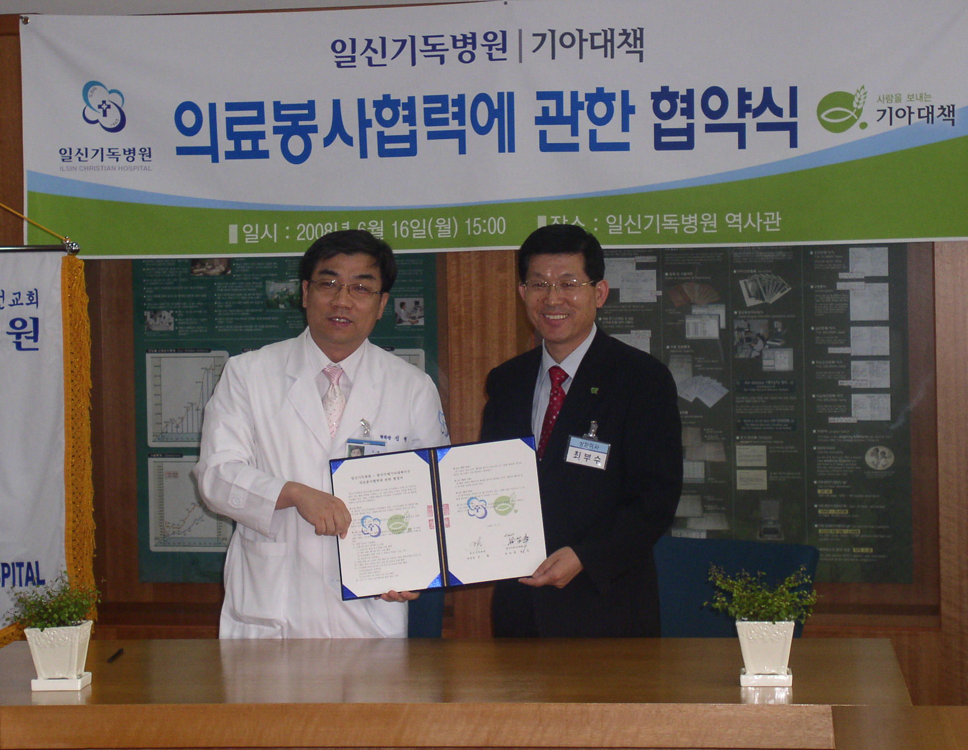 ÀϽű⵶º´¿ø(¿øÀå ±èÇü)°ú Çѱ¹±¹Á¦±â¾Æ´ëÃ¥±â±¸(ȸÀå Á¤Á¤¼· ¸ñ»ç, ÀÌÇÏ ±â¾Æ´ëÃ¥)Àº Áö³ 6¿ù 16ÀÏ ÀϽű⵶º´¿ø ¿ª»ç°ü¿¡¼ ÀÇ·áºÀ»çÇù·Â¿¡ °üÇÑ Çù¾à½ÄÀ» ü°áÇÏ°í ¾ç ±â°ü°ú ½Ã¼³ÀÇ ±³·ù¸¦ ÅëÇÑ »çȸºÀ»çȰµ¿À» ¾à¼ÓÇß´Ù. À̳¯ Çù¾à½Ä¿¡´Â ±èÇü ¿øÀå, ±â¾Æ´ëÃ¥ Ãֺμö »óÀÓÀ̻縦 ºñ·ÔÇØ ÀϽű⵶º´¿ø ÀÌÇå¼® ±âȹ½ÇÀå, ±Ç¼º¿í ÇàÁ¤ºÎÀå, ±èȣö Ãѹ«°úÀå µîÀÌ Âü¼®ÇßÀ¸¸ç, ±â¾Æ´ëÃ¥ ºÎ»êÃѹ«ÀÌ»ç ±Ç°æÈ£ ¸ñ»ç, ¿À¼ºÈ¯ ºÎ»êº»ºÎÀå, ÀÓÁ¤¹é ºÎ»êµ¿ºÎº»ºÎÀå µîÀÌ Âü¼®Çß´Ù. Ãֺμö »óÀÓÀÌ»ç´Â ¡°¿ª»ç¿Í ÀüÅëÀÇ ÀϽű⵶º´¿ø°ú ±â¾Æ´ëÃ¥ÀÌ Çù·ÂÇÒ ¼ö ÀÖ¾î °¨»çµå¸°´Ù. ±â¾Æ´ëÃ¥ÀÌ ±³·ùÇÏ´Â 60¿© °³ÀÇ ±¹°¡¿¡ ÀÇ·áºÀ»ç¸¦ Áö¿øÇÏ°í º´¿øÀ» ¼³¸³ÇÏ´Â µî ¼±±³ÇÏ´Â ÇÑ ¾ËÀÇ ¹Ð¾ËÀÌ µÉ °Í¡±À̶ó¸ç Àλ縻À» ÀüÇß´Ù. ÀϽű⵶º´¿ø°ú ±â¾Æ´ëÃ¥Àº ÇâÈÄ ±ä±Þ±¸È£È°µ¿ ¹× ÇмúºÀ»çȰµ¿ÀÇ ±³·ù Çù·ÂÀ» À§ÇØ ÀηÂ, ÀÇ·áÀåºñ, ÀǾàǰ µîÀ» ±³·ùÇÏ°Ô µÇ¸ç, ƯÈ÷ ±â¾Æ´ëÃ¥ ¼±±³»çºÎºÎ ¹× 18¼¼ ¹Ì¸¸ Àڳ࿡ ÇÑÇØ¼ ÀǷẸÇè´ë»ó Àü¾×¹«·á, ºñ±Þ¿© Ç׸ñ 50% ÇÒÀÎ µîÀ» ¾à¼ÓÇß´Ù. ±èÇü ¿øÀåÀº ¡°±â¾Æ´ëÃ¥°ú ÇÔ²² ±¾ÁÖ¸° ÀÌ¿ô¿¡°Ô ¶±°ú º¹À½À» ÀüÇØ ÀÇ·áÇýÅÿ¡¼ Á¦¿ÜµÈ Á¦3¼¼°è¿¡µµ ¿¹¼ö´Ô »ç¶ûÀÇ ÀÓÀ縦 º¸¿©ÁÙ °Í¡±À̶ó¸ç Çù¾à½Ä ¼Ò°¨À» ¹àÇû´Ù. ÀϽű⵶º´¿øÀº ÇöÀç È£ÁÖ ´ºÄ³½½´ëÇÐ Á¸ ÇåÅÍ º´¿ø ÀڸŰῬ(1993³â), ÀϺ» ¿äµµ°¡¿Íº´¿ø Çù·Âº´¿ø ü°á(1993³â), Áß±¹ Èæ·æ°¼ºÀÇ¿ø ÀڸŰῬ(1996³â), Áß±¹ ¿¬º¯´ëÇÐÀÇÇпø ºÎ¼ÓÀÇ¿ø ÀڸŰῬ(2001³â), µ¿¼Çпø »êÇб³·ù ÇùÁ¤Ã¼°á(2001³â), ¿¬¼¼´ë ½ÅÃÌ, ¿µµ¿¼¼ºê¶õ½ºº´¿ø ÀÇ·áÇù·Âº´¿ø ü°á(2002³â), ºÎ»ê´ëº´¿ø(2002³â) ¹× µ¿¾Æ´ëÀÇ·á¿ø(2004³â) Çб³¹ýÀÎ Çù¾àü°á, ½Å´ëº¹À½º´¿ø°ú ¸ðÀÚº´¿ø Çù¾àü°á(2008³â) µîÀ» ¸Î°í ÀÖ´Ù.