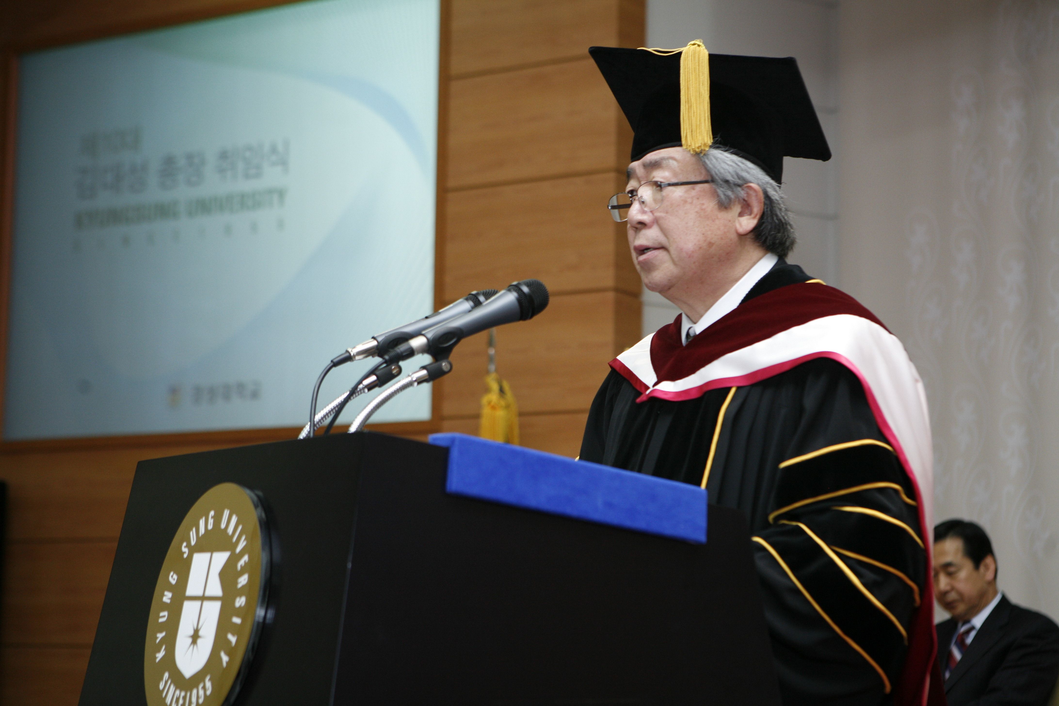 ±è´ë¼º ÃÑÀåÀº ÃëÀӻ縦 ÅëÇØ ¡°°æ¼º´ëÇб³ÀÇ »õ·Î¿î ¿ª»ç¸¦ âÁ¶ÇØ ³ª°¡¾ßÇÏ´Â Á¦10´ë ÃÑÀåÁ÷À» ½ÃÀÛÇÏ¸é¼ ÂüÀ¸·Î ¸·ÁßÇÑ Ã¥ÀÓ°¨À» ´À³¤´Ù¡±¸ç ¡°Ã¹Â°, Â÷º°ÈµÈ ¹ÐÂøÇü ±³À°À» Á¦°øÇϰí, ǰ¼º°ú ¸®´õ½Ê ±³À°À» °ÈÇÏ¿© Àü¹®¼ºÀ» °¡Áø Áß°ß ½Ç¹«Çü ¸®´õ·Î¼ÀÇ ÀÚÁúÀ» °¡Áø ÀÎÀ縦 À°¼ºÇϰÚÀ¸¸ç, µÑ°, Æò°¡¸¦ ÅëÇØ ¿ì¼öÇÑ Çаú ¶Ç´Â Àü°ø¿¡ ´ëÇÑ Àμ¾Æ¼ºê¸¦ Á¦°øÇÏ¿© °ÇÀüÇÑ °æÀïÀû ºÐÀ§±â¸¦ Á¶¼ºÇϰí, ¼Â°, ±³È¯Çлý ÇÁ·Î±×·¥À» ´Ã¸®°í ÇØ¿Ü´ëÇаúÀÇ º¹¼öÇÐÀ§Á¦ ½ÃÇà µî ±¹Á¦Àû °¨°¢°ú °æÇèÀ» ÇÑÃþ ´õ ³ô¿© ±Û·Î¹ú ±¹Á¦È´ëÇÐÀÇ ½ÇÇöÀ» ÀÌ·ç°Ú´Ù¡±°í ¸»Çß´Ù.