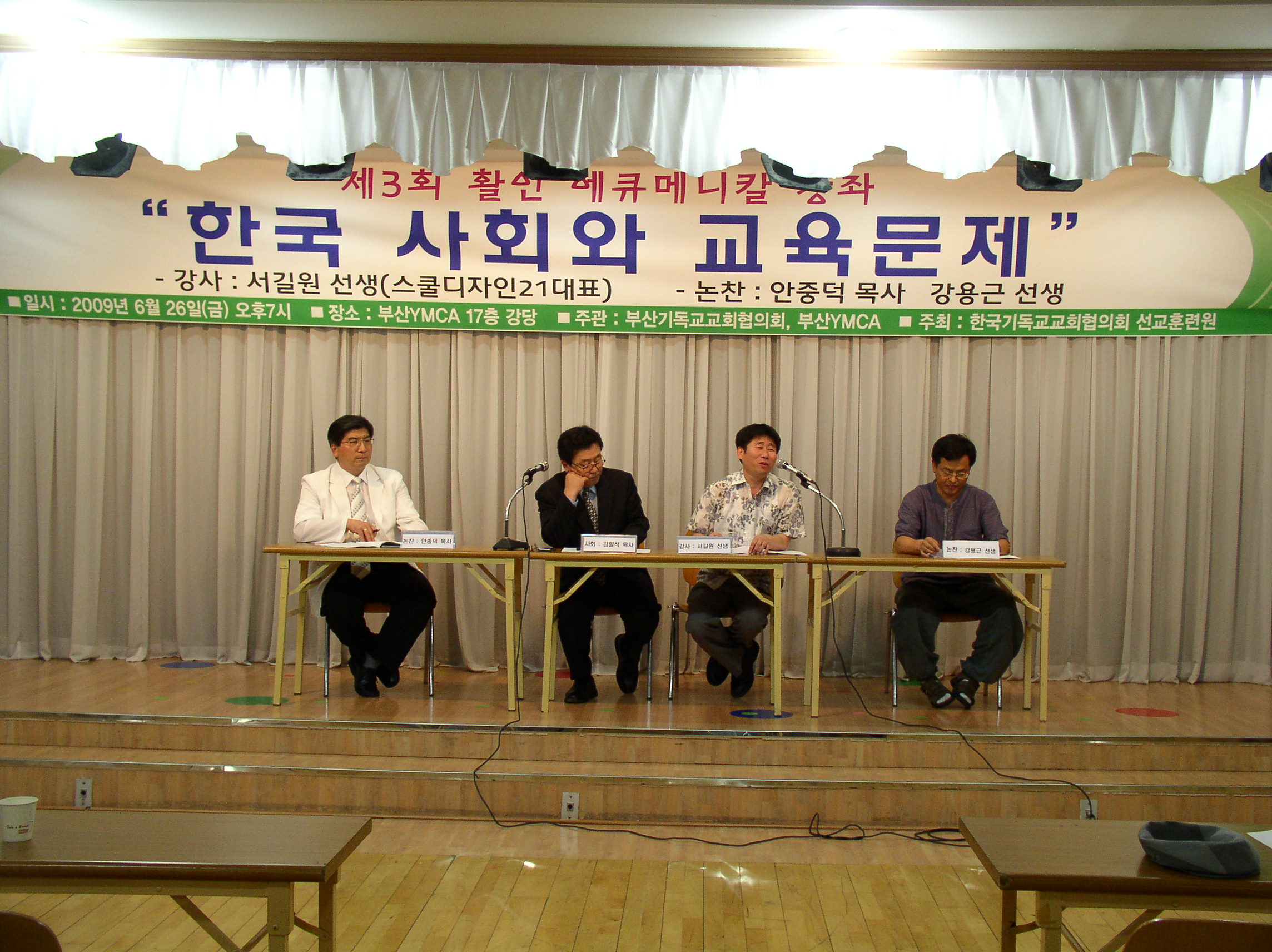Çѱ¹±âµ¶±³±³È¸ÇùÀÇȸ ¼±±³ÈƷÿøÀÌ ÁÖÃÖÇÏ°í ºÎ»ê±âµ¶±³±³È¸ÇùÀÇȸ, ºÎ»êYMCA°¡ ÁÖ°üÇÏ´Â Á¦3ȸ ȰÀÎ ¿¡Å¥¸Þ´ÏÄ® °Á°¡ Áö³ 6¿ù 26ÀÏ ¿ÀÈÄ 7½Ã ºÎ»êYMCA °´ç¿¡¼ ¿·È´Ù. À̹ø °Á´ ¡®Çѱ¹»çȸ¿Í ±³À°¹®Á¦¡¯¶ó´Â ÁÖÁ¦·Î ¾ÈÇÏ¿ø ¸ñ»ç(ºÎ»ê±âµ¶±³±³È¸ÇùÀÇȸ ȸÀå)°¡ »çȸ, À±Á¾¸ð ÁÖ±³ÀÇ ±âµµ·Î ½ÃÀÛÇß´Ù. °»ç·Î ³ª¼± ¼±æ¿ø ¼±»ý(½ºÄðµðÀÚÀÎ21 ´ëÇ¥)Àº ¡®»õ·Î¿î Çб³ ¿îµ¿°ú Çб³ °øµ¿Ã¼ ¸¸µé±â¡¯¶ó´Â Á¦¸ñÀ¸·Î °¿¬Çß´Ù. ¼±æ¿ø ¼±»ýÀº ¡°ÁøÁ¤ÇÑ Çб³ ÀÚÀ²È´Â °ü·áÁÖÀÇ ÇàÁ¤ üÁ¦¸¦ °³ÇõÇÏ´Â µ¥¼ Ãâ¹ßÇØ¾ß ÇÑ´Ù¡±¸ç Çб³ °³Çõ¿îµ¿À¸·Î ¡®ÀÛÀº Çб³ ±³À° ¿îµ¿¡¯À» ¼Ò°³Çß´Ù. ÀÛÀº Çб³ ±³À° ¿îµ¿Àº ½Ã°ñ Àü¿ø¿¡ ÀÚ¸®Àâ¾Æ ³ëÀÛÇнÀ, üÇèÇнÀ µî ¾Æµ¿ÀÇ È°µ¿°ú üÇèÀ» Áß½ÃÇÏ´Â ±³¼ö-ÇнÀ ¹æ½ÄÀ» ¿î¿µÇÑ´Ù.