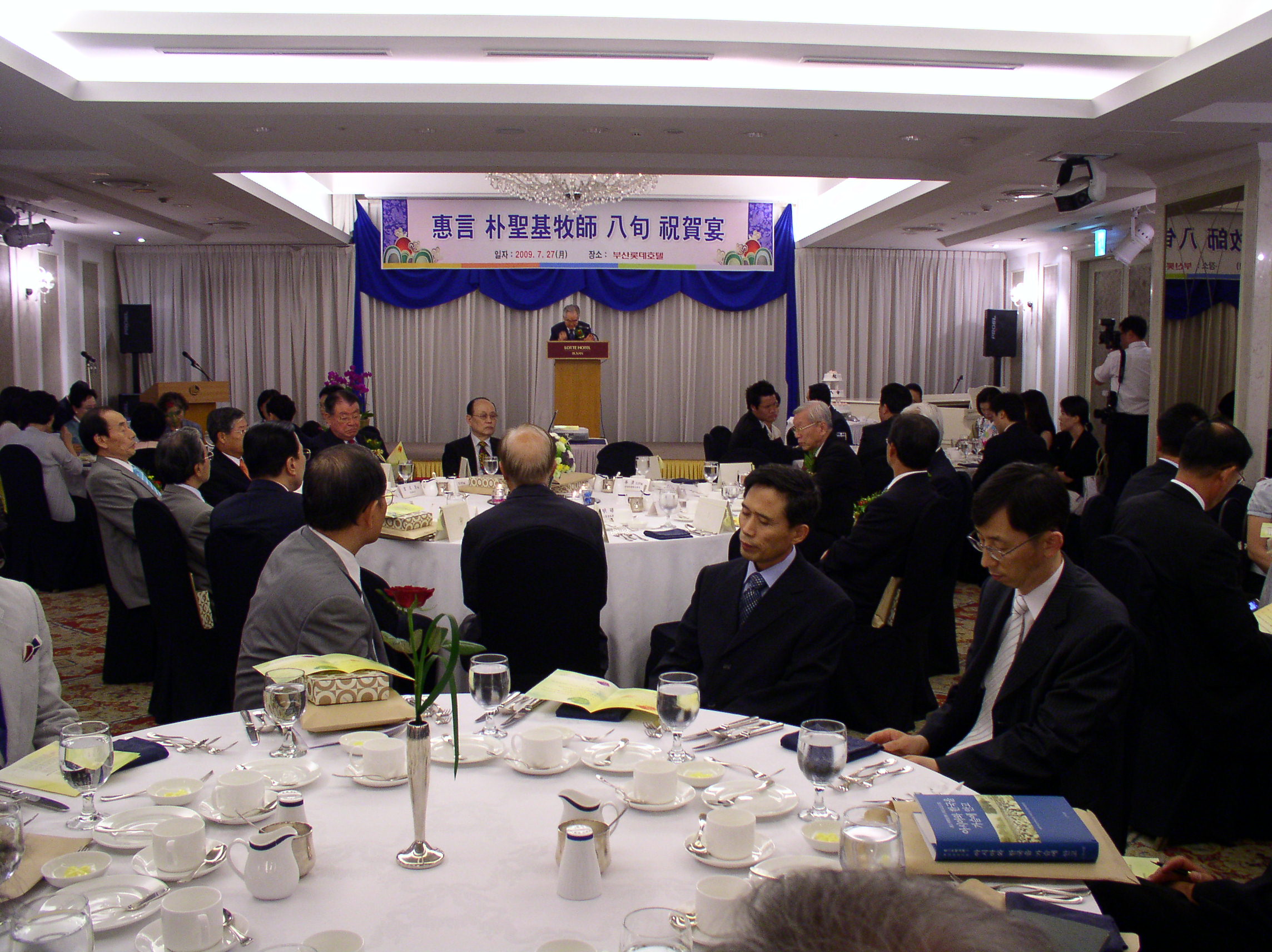 À̳¯ ¹Ú¼º±â ¸ñ»ç ÆÈ¼ø »ý½Å ÃàÇϸ¦ °âÇÏ´Â ÀÚ¸®·Î °¡Á·Àº ¹°·Ð ºÎ»ê±³°è ÁöµµÀÚµé°ú ºê´Ï¿¤ ÃÑȸ °ü°èÀÚµé, ºê´Ï¿¤Çпø Á¦ÀÚ µî 150¿©¸íÀÌ Âü¼®Çß´Ù. ±èÇåÁÖ ¸ñ»çÀÇ »çȸ(ºê´Ï¿¤ÃÑȸ Ãѹ«)·Î ½ÃÀÛÇÑ 1ºÎ ¿¹¹è´Â Á¶¿µÈ£ ¸ñ»ç(ºÎ»ê±âµ¶±³ÃÑ¿¬ÇÕȸ »óÀÓȸÀå)°¡ ±âµµ, ÇÏÀϱâ Àå·Î(Àü ºê´Ï¿¤¿©°í ±³Àå)°¡ ¼º°æºÀµ¶, Á¤Áø°æ ¸ñ»ç(Çѱ¹±âµ¶±³ÃÑ¿¬ÇÕȸ Áõ°æÈ¸Àå)°¡ ¼³±³, Á¶±àõ ¸ñ»ç(°í½Å Áõ°æÃÑȸÀå)°¡ Ã൵Çß´Ù. Á¤Áø°æ ¸ñ»ç´Â ¼³±³¸¦ ÅëÇØ ¹Ì±¹ ¾ÆÁÖ»ç´ëÇп¡¼ ¸¸³ ¹Ú¼º±â ¸ñ»ç¸¦ ȸ»óÇÏ¸ç ¡°¹Ú¼º±â ¸ñ»ç´Â Àþ¾î¼ºÎÅÍ ²ÞÀ» °®°í, ±× ²ÞÀ» ½ÇÇöÇϱâ À§ÇØ ³ë·ÂÇØ ¿©±â±îÁö ¿Ô´Ù. ±³À°¿¡, º¹À½¿¡ °ü½ÉÀ» °¡Áø ¹Ú¸ñ»ç´Â Áö±Ýµµ ½¬Áö ¾Ê°í ÀÏÇϰí ÀÖ´Ù¡±°í ¸»Çß´Ù.