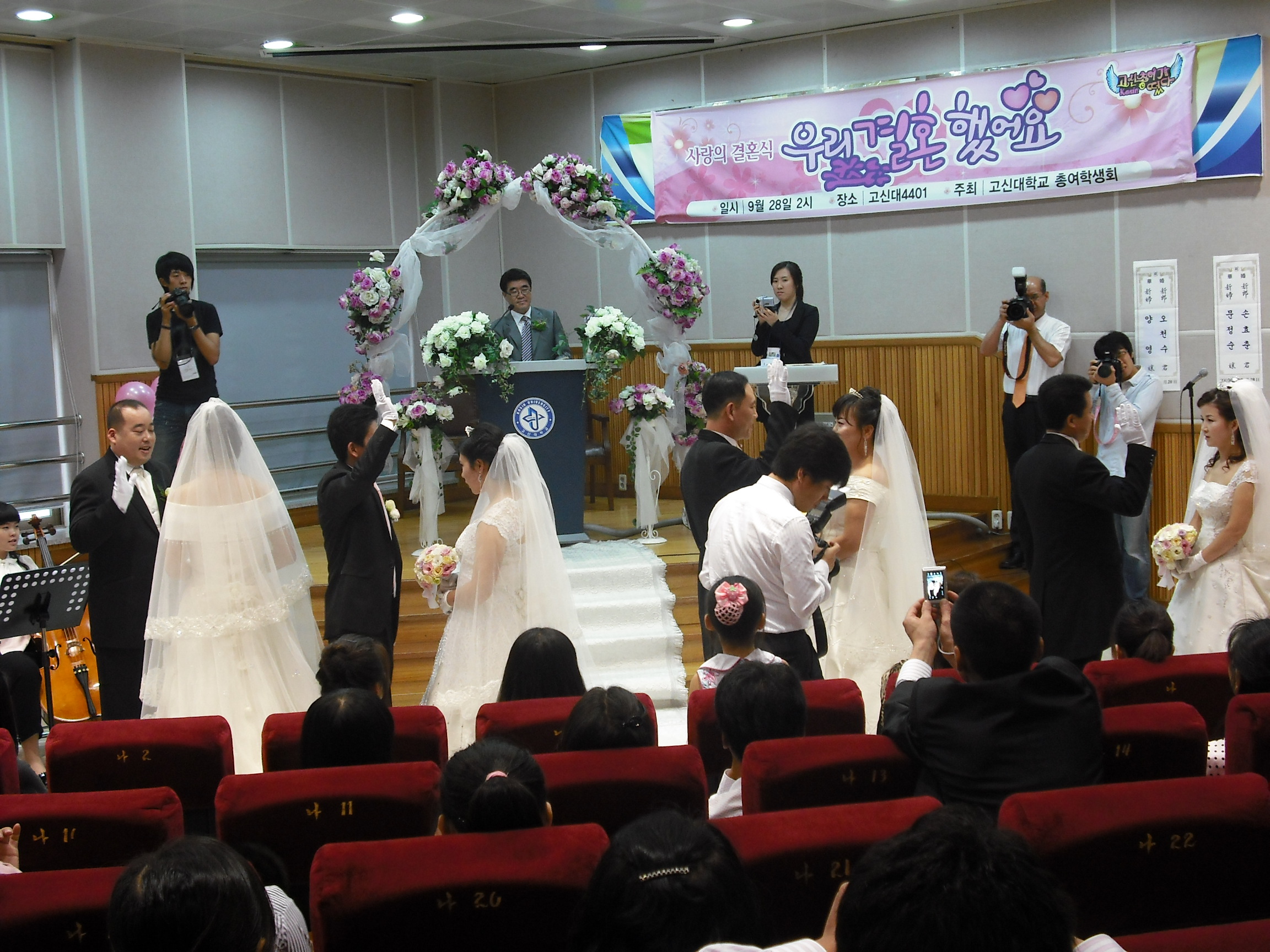 À̹ø °áÈ¥½ÄÀº °í½Å´ëÇб³°¡ ÁÖÃÖ, ÃÑ¿©ÇлýȸÀÇ ÁÖ°üÀ¸·Î ÁøÇàÇß´Ù. °í½Å´ë ÃÑ¿©Çлýȸ´Â À̹ø °áÈ¥½ÄÀ» À§ÇØ Áö³ 9¿ù 15ÀϺÎÅÍ 17ÀϱîÁö ÀÏÀÏÂþÁýÀ» ¿î¿µÇØ ÇлýµéÀÇ Âü¿©·Î 3¹é¸¸¿øÀ» ¸ð±Ý, ±³È¸ ¹× »çÁø°ü, ¿þµù¾÷ü ÈÄ¿ø, Çлýȸ ¸ð±Ý µî ÃÑ 1õ¸¸¿øÀÇ °æºñ¸¦ ¸¶·ÃÇß´Ù. ÈÀå, µå·¹½º, »çÁøÃÔ¿µ ½ÉÁö¾î ½ÅÈ¥¿©Çà±îÁö, ¸ðµç °æºñ¸¦ °í½Å´ë¿¡¼ ºÎ´ãÇØ ¹«·áÇÕµ¿°áÈ¥½ÄÀÌ Ä¡·¯Á³´Ù. À̳¯ °áÈ¥ÇÑ ½ÅÈ¥ºÎºÎµéÀº °áÈ¥½Ä Á÷ÈÄ ºÎ»ê ¿©ÇàÁö¸¦ ¹æ¹®Çϰí Á¦ÁÖµµ·Î 1¹Ú 2ÀÏÀÇ ½ÅÈ¥¿©ÇàÀ» ¶°³µ´Ù. °áÈ¥½Ä¿¡ Âü¼®ÇÑ °¡Á·µé°ú Ä£±¸µéÀº ¡°Å¸±¹¿¡¼ Èûµé°Ô »ì°í ÀÖ´Â ½ÅÈ¥ºÎºÎµé¿¡°Ô ÀÌ·¸°Ô ¸ÚÁø °áÈ¥½ÄÀ» Ä¡·ê ¼ö ÀÖ°Ô ÇØÁּż °¨»çÇÑ´Ù¡±¸ç ¡°°í½Å´ëÀÇ ¸¹Àº ºÐµéÀÌ ÀÌ ½ÅÈ¥ºÎºÎµé¿¡°Ô °¡Á·ÀÌ µÇ¾îÁÖ°í, Ä£±¸°¡ µÇ¾î ÁÖ¾î Áø½ÉÀ¸·Î °¨»çÇÑ´Ù¡±°í ¸»Çß´Ù.