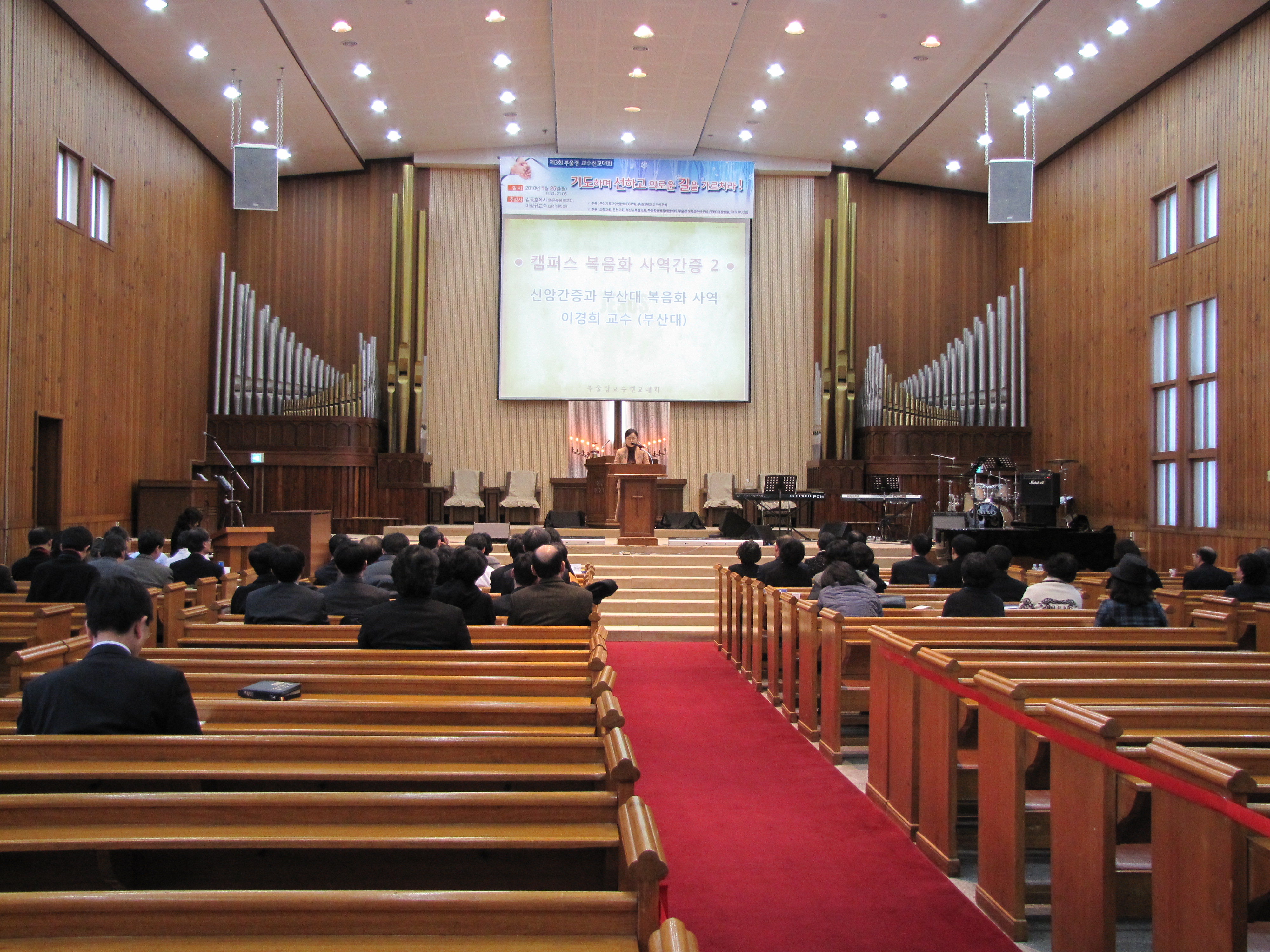 ÀÌ¾î °­¿µ¹« ±³¼ö(µ¿¾Æ´ë), À̰æÈñ ±³¼ö(ºÎ»ê´ë), µ¿¼º½Ä ±³¼ö(â¿ø´ë), ÀÌÇѼ® ±³¼ö(ÇØ¾ç´ë), À̵¿ÈÆ ±³¼ö(µ¿¸í´ë), ¹ÚÇâ¼± ±³¼ö(ºÎ»ê°æ»ó´ë)°¡ ¹ßÇ¥ÀÚ·Î ³ª¼­ °¢ ´ëÇÐÀÇ Ä·ÆÛ½º º¹À½È­¸¦ °£ÁõÇÏ°í ³ª´©´Â ½Ã°£À» °¡Á³´Ù. °­¿µ¹« ±³¼ö´Â ¹ßÁ¦¸¦ ÅëÇØ µ¿¾Æ´ëÇб³ ³» ¼¼¿öÁø Ä·ÆÛ½º ±³È¸¸¦ ¼³¸íÇϸç Great Vision 2012¸¦ ¼³Á¤, µ¿¾Æ´ë ¸ðµç Ä·ÆÛ½ºÀÎ ½ÂÇÐÄ·ÆÛ½º, ºÎ¹ÎÄ·ÆÛ½º, ±¸´öÄ·ÆÛ½º¿¡ ±³È¸¸¦ ⸳Çϰí Áö¿ª±³È¸¿Í ¿¬°èÇØ º¹À½È­¸¦ ÃßÁø ÁßÀ̶ó°í ¼³¸íÇß´Ù.