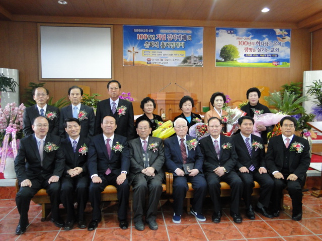 2ºÎ Àå·Î ±Ç»ç ÀºÅð½ÄÀº ±¸Àç¼®, ¹Ú¼®Á¦ Àå·Î, ÃÖ¸·¼ø, ±èÇöÀÚ, ±èÆÇ¼±, ¹®Àçȯ, ¹ÚÇå¼®, ÀüÀϼø ±Ç»ç°¡ ÀºÅðÇß´Ù. 3ºÎ ÃàÇϽÄÀº 100Áֳ⠱â³ä ¿µ»ó¹° »ó¿µ ÈÄ »ç¸ð Áßâ´ÜÀÇ Æ¯¼Û, ¹ÚÇØ¼ö ¿ø·ÎÀå·Î°¡ ±³È¸100³â ¾à»ç ¼Ò°³¸¦ Çß´Ù. À̾î 11´ë ±³¿ªÀÚÀ̸ç Áõ°æÃÑȸÀåÀÎ °û»ïÂù ¸ñ»ç¿Í Áõ°æ³ëȸÀå ¹ÚÃæ·Ä ¸ñ»ç°¡ Ãà»ç¸¦ ÀüÇß°í º»±³È¸ Ãâ½ÅÀ̸ç Áõ°æÃÑȸÀå ¹ÚÀ¯»ý ¸ñ»ç¿Í º»±³È¸ Ãâ½ÅÀÎ ±¸µ¿Å °¨µ¶ÀÌ È¸°í»ç¸¦ ÀüÇß´Ù.