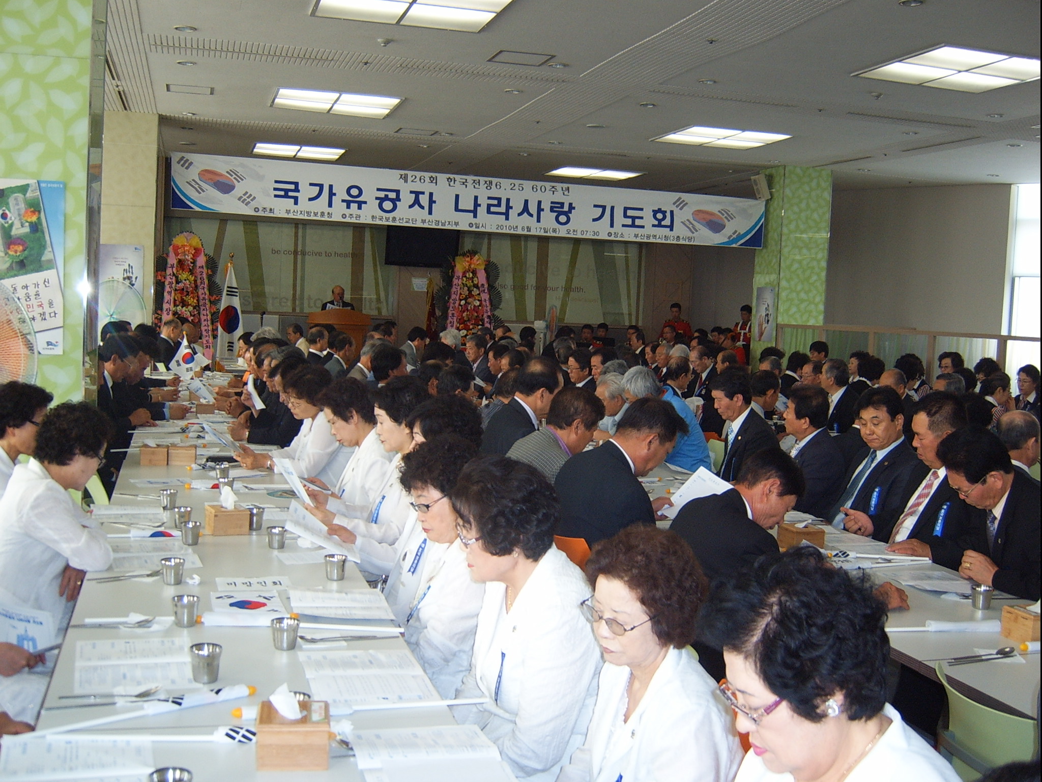 Çѱ¹ÀüÀï 60ÁÖ³âÀ» ±â³äÇØ Áö³ 6¿ù 17ÀÏ ºÎ»êÁö¹æº¸ÈÆÃ» ÁÖÃÖ·Î ±¹°¡À¯°øÀÚ ³ª¶ó»ç¶û ±âµµÈ¸°¡ ºÎ»ê½Ãû¿¡¼ °³ÃֵƴÙ. 1ºÎ ±¹¹ÎÀÇ·Ê·Î ½ÃÀÛµÈ À̳¯ Çà»ç´Â ÀÌÁ¾¾ð ¸ñ»ç(ÁöºÎÀå)ÀÇ »çȸ·Î 2ºÎ ¿¹¹è¿¡ µé¾î°¬´Ù. Á¶¿µÈ£ ¸ñ»ç´Â ¡®¼±ÇÑ ½Î¿ò¡®À̶ó´Â Á¦¸ñÀ¸·Î ¸»¾¸À» ÀüÇÏ¸é¼ ¡°´«¹°°ú Èñ»ýÀÌ ÀÖ¾ú±â¿¡ ´ëÇѹα¹ÀÌ ¹ø¿µÀ» ¾òÀ» ¼ö ÀÖ¾ú´Ù¡°¸ç ¾ÇÇÑ ½Î¿òÀÌ ¾Æ´Ï¶ó ¼±ÇÑ ½Î¿òÀ¸·Î ¹Ýµå½Ã ½Â¸®ÇÒ °ÍÀ» °Á¶Çß´Ù.