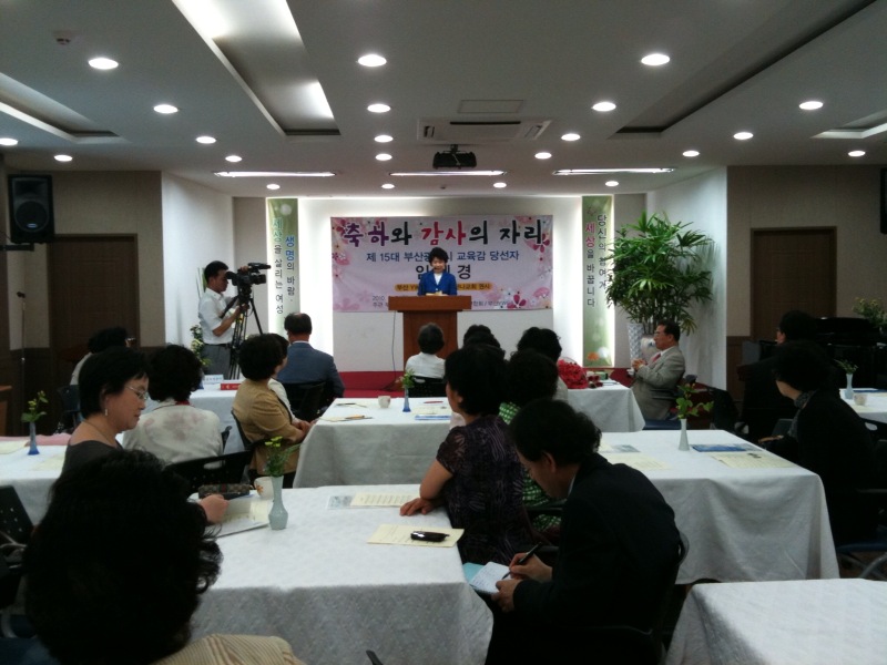 Á¦15´ë ºÎ»ê½Ã±³À°°¨¿¡ ´ç¼±µÈ ÀÓÇý°æ ±Ç»ç(È£»ê³ª±³È¸). À̸¦ ÃàÇÏÇϱâ À§ÇØ ºÎ»êÁö¿ª ±³°èÁöµµÀÚµéÀÌ ÇÑÀÚ¸®¿¡ ¸ð¿´´Ù. ºÎ»ê¼º½Ãȿº»ºÎ, ºÎ»ê±âµ¶±³ÃÑ¿¬ÇÕȸ, ºÎ»êYWCA °øµ¿ÁÖÃÖ·Î 6¿ù 21ÀÏ(¿ù) ¿ÀÀü 11½Ã ºÎ»êYWCA °´ç¿¡¼ ¡®ÀÓÇý°æ ºÎ»ê½Ã±³À°°¨ ´ç¼± ÃàÇÏȸ¡¯¸¦ °¡Á³´Ù.