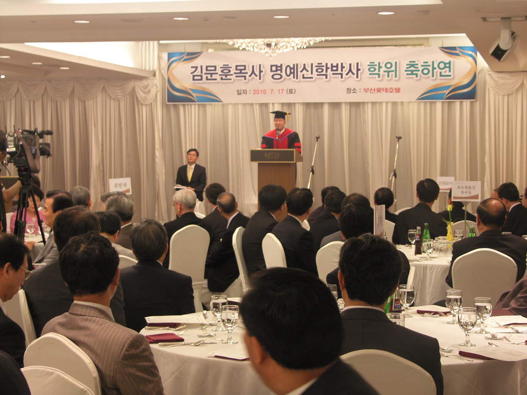 Áö³ 6¿ù 12ÀÏ ¹Ì±¹ º¹À½´ëÇб³(ÃÑÀå ½ÅÇö±¹ ¹Ú»ç)¿¡¼ ¸í¿¹½ÅÇйڻç ÇÐÀ§¸¦ ¹ÞÀº ±è¹®ÈÆ ¸ñ»ç°¡ Áö³ 7¿ù 17ÀÏ ºÎ»ê·Ôµ¥È£ÅÚ¿¡¼ ¸í¿¹½ÅÇйڻç ÇÐÀ§¼ö¿© °¨»ç¿¹¹è¸¦ µå·È´Ù.