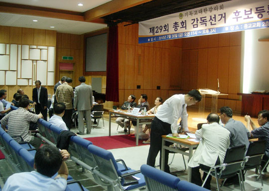 ±âµ¶±³´ëÇѰ¨¸®È¸ ¿¬È¸°¨µ¶¼±°Å°ü¸®À§¿øÈ¸(À§¿øÀå Àü¾çö)´Â 8¿ù 28ÀÏ ¿¹Á¤µÈ ¼±°Å¿¡ Ã⸶ÇÒ Èĺ¸ÀÚ¿¡ ´ëÇÑ µî·Ï¾÷¹«¸¦ Áö³ 7¿ù 29ÀÏ ¿ÀÀü 11½ÃºÎÅÍ ¿ÀÈÄ 3½Ã±îÁö Á¾±³±³È¸(´ãÀÓ ÃÖÀÌ¿ì) 2Ãþ ¿¹¹è½Ç¿¡¼ °¡Á³´Ù.