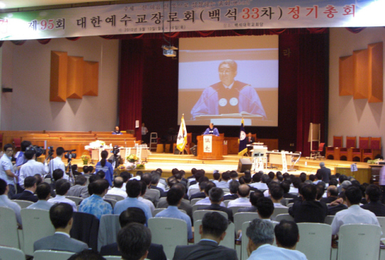 ¿¹Àå¹é¼® Á¦95ȸ 33Â÷ ÃÑȸ°¡ Áö³´Þ 13ÀϺÎÅÍ 16ÀϱîÁö ¡®ÇÑ ¸¶À½ ÇÑ ¶æÀ¸·Î ¼ºÀåÇÏ´Â ÃÑȸ¡®¶ó´Â ÁÖÁ¦·Î 61°³ ³ëȸ 700¿©¸íÀÇ ÃÑ´ë°¡ Âü¼®ÇÑ °¡¿îµ¥ õ¾È ¹é¼®´ëÇб³¿¡¼ °³ÃֵƴÙ. ½ÅÀÓÃÑȸÀåÀº ³ë¹®±æ ¸ñ»ç(»õ¼Ò¸Á±³È¸)°¡ Ãß´ëµÇ¾úÀ¸¸ç, ¸ñ»çºÎÃÑȸÀåÀº À¯ÁßÇö ¸ñ»ç(¼ºÇö±³È¸)°¡ ¼±ÃâµÆ´Ù. ¶Ç Àå·ÎºÎÃÑȸÀå¿¡´Â ±è±â¸¸ Àå·Î°¡ ´Üµ¶ÀÔÈĺ¸ÇÏ¿© ¹Ú¼ö·Î Ãß´ëµÆ´Ù.