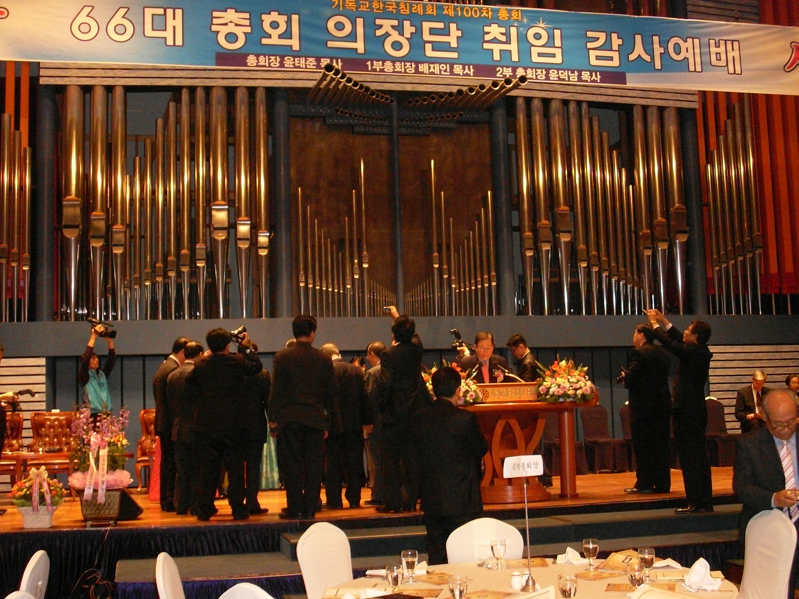 ³²È£ ¸ñ»ç (Á÷ÀüÃÑȸÀå ½ÅźÁø±³È¸)°¡ ÃëÀÓÆÐ¸¦ ÁõÁ¤Çϰí ÃÑȸÀå À±ÅÂÁØ ¸ñ»ç°¡ ÃëÀӻ縦 ÀüÇß´Ù. ÀÌ¾î ±è¹üÀÏ ´ë±¸½ÃÀå, ¿À°ü¼® ¸ñ»ç(Áõ°æÃÑȸÀå), Robert Samuel Stallings »ç¹«ÃÑÀå(¹Ì±¹³²Ä§·Ê±³ Çѱ¹¼±±³È¸)ÀÌ Ãà»ç¸¦ ÀüÇß°í ÀÌ»ó¸ð ¸ñ»ç(Áõ°æÃÑȸÀå, ³íÇö¿µ±¤±³È¸), µµÇÑÈ£ ¸ñ»ç(ħ·Ê½ÅÇдëÇб³ ÃÑÀå), ÀÌÈ«½Ä ¸ñ»ç(´ë±âÃÑ È¸Àå)ÀÌ °Ý·Á»ç¸¦ ÀüÇß´Ù.