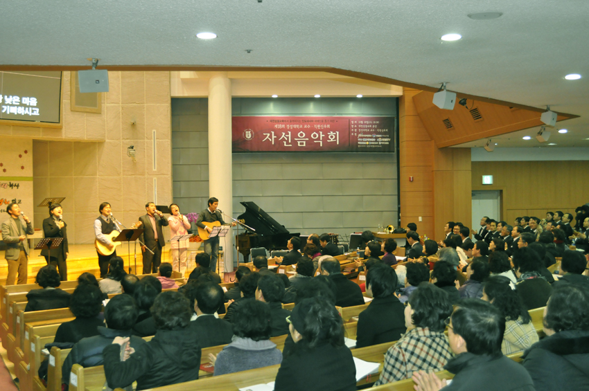ÀÚ¼±À½¾Çȸ¸¦ ÁغñÇÏ´Â ½Å¿ìȸ ±³Á÷¿øµéÀÇ Áغñ¿Í ¿ÀÇ´Â ´ë´ÜÇß´Ù. Á¡½É½Ã°£ ¹× Åð±Ù ÈÄ ½Ã°£À» ÀÌ¿ëÇØ °æ¼º´ë ½ÅÇдëÇÐ ¿¹¹è½Ç¿¡ ¸ð¿© ²ÙÁØÈ÷ ÁغñÇß´Ù.