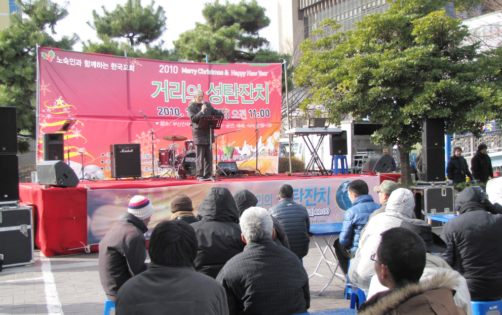 ¡®³ë¼÷Àΰú ÇÔ²²ÇÏ´Â Çѱ¹±³È¸¡¯ 2010 °Å¸®¼ºÅº ÀÜÄ¡°¡ Áö³ 12¿ù 24ÀÏ ¼¿ï¿ª, ¼ö¿ø¿ª, õ¾È¿ª, ´ëÀü¿ª, ´ë±¸¿ª µî Àü±¹ 17°÷¿¡¼ ÆîÃÄÁ³´Ù. ±¸¼¼±º, ¼º°øÈ¸, ¿¹ÀåÅëÇÕ, Çѱ¹±³È¸Èñ¸ÁºÀ»ç´ÜÀÌ °øµ¿ÁÖÃÖÇÏ´Â °Å¸® ¼ºÅº ÀÜÄ¡´Â ¸Å³â ¼ºÅºÀýÀ» ¸Â¾Æ °¢ Áö¿ª ±âµ¶±³ ´Üüµé°ú ±³È¸µéÀÌ Çù·ÂÇØ ³ë¼÷Àε鿡°Ô ½Ä»ç¿Í ¼±¹°À» Á¦°øÇϰí ÀÖ´Ù.