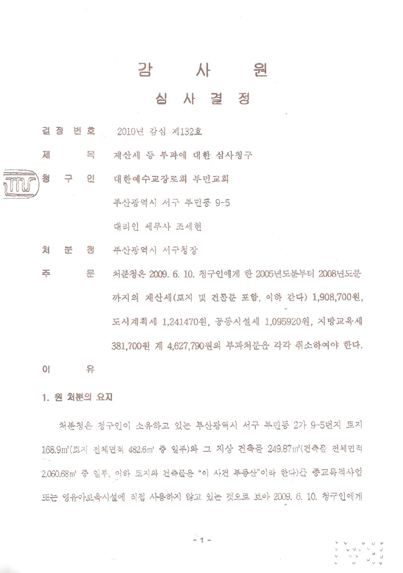 ÀÌ¿¡ ºÎ»ê ºÎ¹Î±³È¸¿Í ÃÊÀ嵿±³È¸´Â ºÎ´çÇÏ´Ù¸ç ¼¼¹«»ç Á¶¼¼Çö Àå·Î(ÃÊ·®±³È¸)¿¡°Ô ÀÇ·ÚÇØ °¨»ç¿ø¿¡ ¡®Àç»ê¼¼ µî ºÎ°ú¿¡ ´ëÇÑ ½É»çû±¸¡¯¸¦ ½ÅûÇß´Ù.