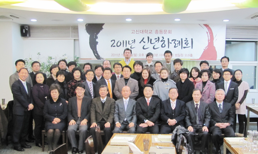 °í½Å´ëÇб³ Ãѵ¿¹®È¸´Â 1¿ù 10ÀÏ(¿ù) ¿ÀÈÄ 6½Ã 30ºÐ ´õÆÄƼºßÆä ¹üÀÏÁ¡¿¡¼ 2011³â ½Å³âÇÏ·Êȸ¸¦ °¡Á³´Ù. 1ºÎ ¿¹¹è´Â ±èµ¿À± ȸÀåÀÇ »çȸ·Î ½ÃÀÛÇØ ¹Ú±ÝÀÚ ºÎȸÀå(°£È£Çаú)ÀÌ ±âµµ, ¹Ú¹®Ã¶ ¸ñ»ç(µ¿ºÎ»ê±³È¸)°¡ ¡®¿µÈ¥ÀÌ Àߵʰ°ÀÌ¡¯¶ó´Â Á¦¸ñÀ¸·Î ¼³±³ÇßÀ¸¸ç, ÀÌȯºÀ ¸ñ»ç(ÃÊ´ëȸÀå)ÀÇ Ã൵·Î ¸¶ÃÆ´Ù.