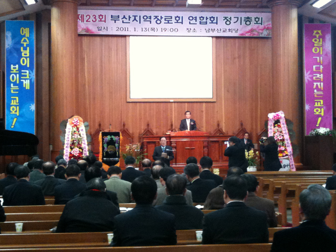 ¿¹ÀåÇÕµ¿ ºÎ»êÁö¿ªÀå·Îȸ¿¬ÇÕȸ°¡ 1¿ù 13ÀÏ(¸ñ) ¿ÀÈÄ 7½Ã ³²ºÎ»ê±³È¸¿¡¼ Á¦23ȸ Á¤±âÃÑȸ¸¦ °³ÃÖÇß´Ù. À̳¯ ¿¹¹è´Â ¼ö¼®ºÎȸÀå ÃÖ±Ôȯ Àå·ÎÀÇ »çȸ·Î Á¶¼¼Çö Àå·Î(¸í¿¹È¸Àå)°¡ ±âµµ, ȲÀÎö ¸ñ»ç(³²ºÎ»ê±³È¸)°¡ ¡®µ¥»ì·Î´Ï°¡±³È¸¡¯¶ó´Â Á¦¸ñÀ¸·Î ¼³±³Çϰí, È«Á¾±¹ ¸ñ»ç(³²ºÎ»ê³²³ëȸÀå, »êÁ¤Çö±³È¸)ÀÇ Ã൵·Î ¸¶ÃÆ´Ù.