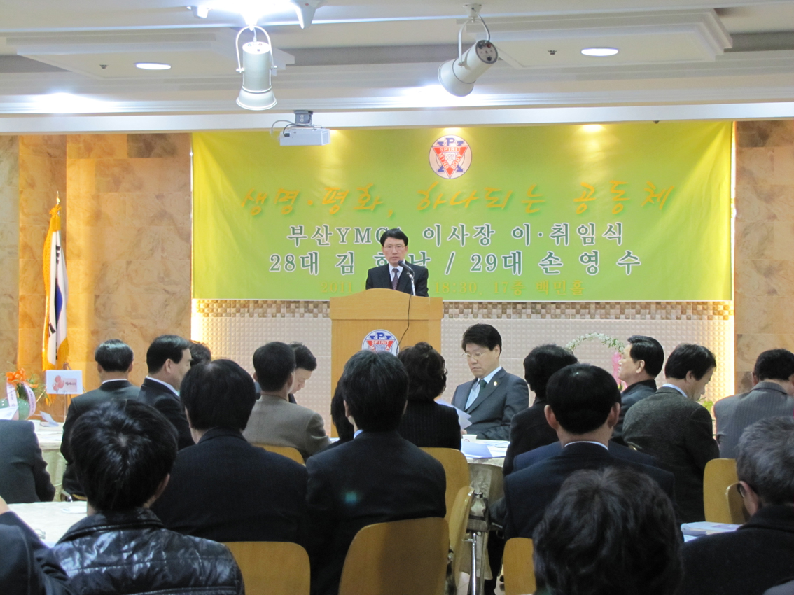 3¿ù 25ÀÏ ¿ÀÈÄ 6½Ã 30ºÐ, ºÎ»êYMCA 17Ãþ ´ë°´ç¿¡¼ ÀÌ»çÀå ÀÌÀÓ¡¤ÃëÀÓ½ÄÀÌ ¿·È´Ù. Á¦28´ë ±èÈ£³² ÀÌ»çÀåÀÌ ÀÌÀÓÀ», Á¦29´ë ¼Õ¿µ¼ö ÀÌ»çÀåÀÌ ÃëÀÓÀ» Çß´Ù.