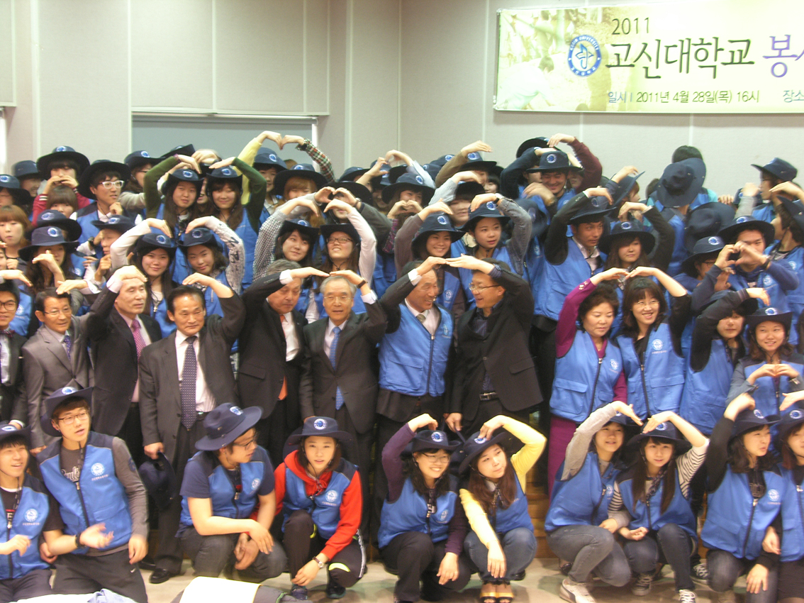 2011³âµµ °í½Å´ë Áö±¸ÃÌ »ç¶ûÀº °è¼ÓµÈ´Ù. °í½Å´ëÇб³´Â Áö³ 4¿ù28ÀÏ ¡®2011Çг⵵ ÄÚ¶÷µ¥¿À ºÀ»ç´Ü ¹ß´ë½ÄÀ» °³ÃÖÇß´Ù. ƯÈ÷ ±Ý³â¿¡´Â ÇØ¿ÜºÀ»ç´Ü »Ó¸¸¾Æ´Ï¶ó ±¹³»ºÀ»ç´Üµµ ±¸¼ºÇØ ±¹³»¿Ü ºÀ»çȰµ¿À» ÃßÁøÇÏ°Ô µÈ´Ù. ÇØ¿ÜºÀ»ç´ÜÀº 2006³â ¼³¸³µÇ¾î ¸Å³â ¼Ò¿Ü¹Þ´Â Áö±¸ÃÌÀÇ ÀÌ¿ôµé¿¡°Ô »ç¶ûÀ» ÀüÇß°í, ³ª´®°ú ¼¶±èÀ» ½ÇÃµÇØ Çѱ¹¹®È¿Í Çϳª´ÔÀÇ »ç¶ûÀ» ÀüÇϴµ¥ ÁÖ·ÂÇØ ¿Ô´Ù.