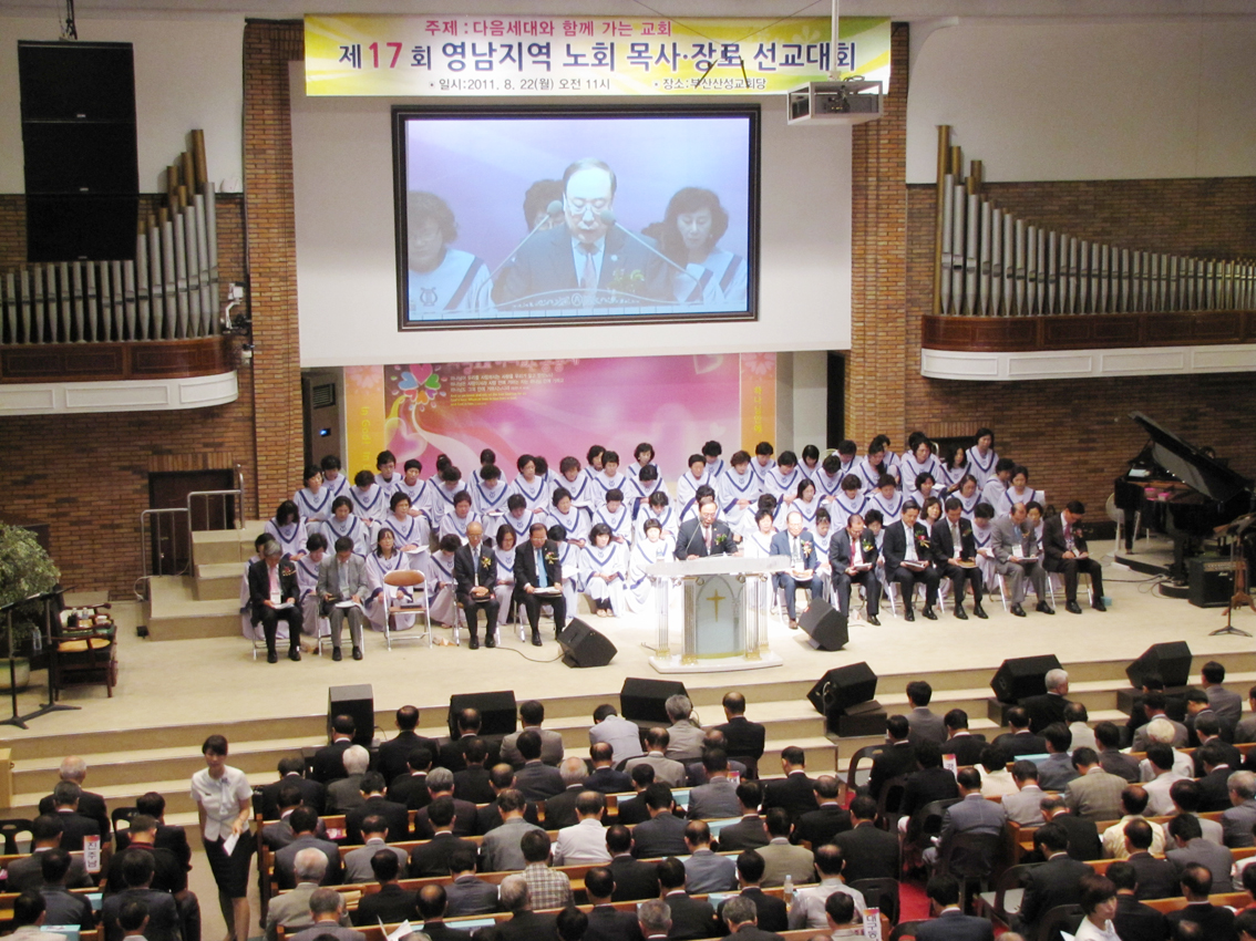 Áö³ 22ÀÏ(¿ù) ºÎ»ê »ê¼º±³È¸(Çã¿ø±¸ ¸ñ»ç)¿¡¼ ¿µ³²Áö¿ª ³ëȸ ¸ñ»ç¡¤Àå·Î ¼±±³´ëȸ°¡ ¿·È´Ù. À̳¯ ¿µ³²Áö¿ª¿¡ ¼ÓÇÑ ³ëȸ ¸ñ»ç¡¤Àå·Î ¾à 6~700¿©¸íÀÌ Âü¼®ÇØ ¡®´ÙÀ½¼¼´ë¿Í ÇÔ²² °¡´Â ±³È¸¡¯¶ó´Â ÁÖÁ¦·Î ¿·È´Ù. °³È¸¿¹¹è Àεµ´Â ÃÖ¼º±¤ ¸ñ»ç(¿µ³²Áö¿ª³ëȸÇùÀÇȸ ȸÀå), ±âµµ´Â ¹èÇý¼ö Àå·Î(Á÷ÀüȸÀå), ¼º°æºÀµ¶Àº ¹ÚÁ¾È¯ ¸ñ»ç(°æºÏ³ëȸÀå), »ê¼º±³È¸ ¸¶¸®¾Æ ¼º°¡´ëÀÇ Âù¾çÀÌ ÀÖ¾ú°í ±èÁ¤¼ ¸ñ»ç(Á¦ÁÖ ¿µ¶ô±³È¸, ÃÑȸÀå)°¡ ¸¶°¡º¹À½ 5Àå 25Àý~34ÀýÀÇ ¸»¾¸À» °¡Áö°í ¡®¿Í¼ º¸°í µè°í ÀüÇϼ¼¿ä¡¯¶ó´Â Á¦¸ñÀ¸·Î ¼³±³Çß´Ù. ±èÁ¤¼ ¸ñ»ç´Â ¡°¿ì¸®¿¡°Ô´Â ±×·¸°Ô ÇØ¾ß ÇÒ »ç¸íÀÌ ÀÖ´Ù¡±¸ç ¡°¿µÎ ÇØ Ç÷·çÁõ ¾ÎÀº ¿©ÀÎÀÌ ¿¹¼ö´Ô¿¡ ´ëÇØ µè°í ±× ¾È¿¡ ¿ÊÀÚ¶ô¿¡ ¼Õ¸¸ ´ë¾îµµ ³´°Ú´Ù´Â ¹ÏÀ½ÀÌ »ý°å°í ±×°ÍÀ» ½ÇÁ¦·Î ÇàÇÑ °Íó·³, ¿ì¸® ¿ª½Ã Çϳª´Ô ¸»¾¸À» µè°í ¹ÏÀ½ÀÌ »ý±â¸é ÇàÇØ¾ß ÇÑ´Ù. ±×°ÍÀÌ ÁøÁ¤ÇÑ ¹ÏÀ½ÀÌ´Ù¡±°í ¼³±³¸¦ Çß´Ù.