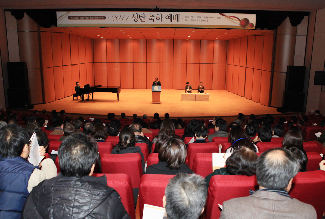 Áö³ 12¿ù 12ÀÏ(¿ù) °æ¼º´ëÇб³ ÄܼƮȦ¿¡¼´Â ³²¼º¡¤±¹¼º¡¤ÈƼº¡¤ÇѼºÇпø ±³Á÷¿øµéÀÌ ¸ð¿© ¼ºÅº ÃàÇÏ ¿¹¹è¸¦ µå·È´Ù. Àεµ´Â ¹ÚÀÇ¿µ ¸ñ»ç(°æ¼º´ë ±³¸ñ), ¸»¾¸Àº Á¤¾çÈñ ¸ñ»ç(¿Â´©¸®±³È¸ ´ãÀÓ, ºÎ±âÃÑ È¸Àå)°¡ ¼¶°å´Ù.