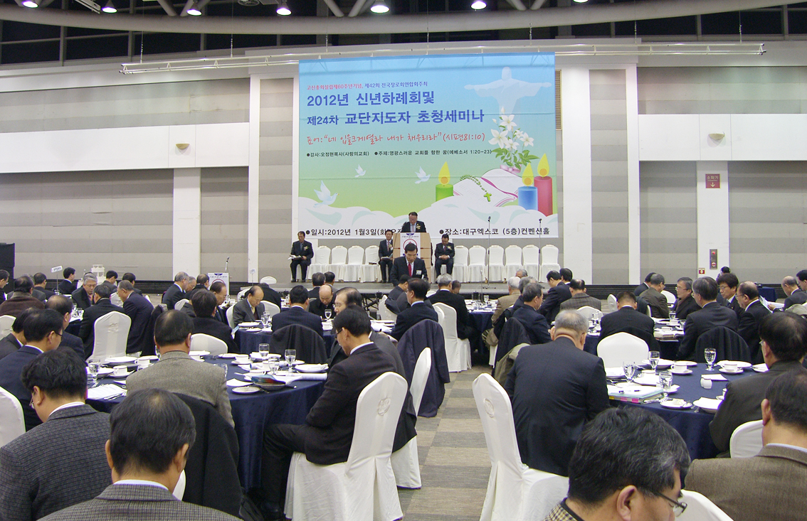 Áö³ 1¿ù 3ÀÏ(È) ´ë±¸ ¿¢½ºÄÚ 5Ãþ ÄÁº¥¼ÇȦ¿¡¼´Â ¡®2012³â ½Å³âÇÏ·Êȸ ¹× Á¦ 24ȸ ±³´ÜÁöµµÀÚ ÃÊû ¼¼¹Ì³ª¡¯°¡ ¿·È´Ù. ¡®¿µ±¤½º·¯¿î ±³È¸¸¦ ÇâÇÑ ²Þ¡¯À̶õ ÁÖÁ¦·Î ¿¸° À̹ø Çà»ç´Â °í½Å±³´Ü Àü±¹Àå·Îȸ¿¬ÇÕȸ(ȸÀå ·ù±¤½Å Àå·Î) ÁÖÃÖ·Î ±âȹµÆ´Ù.